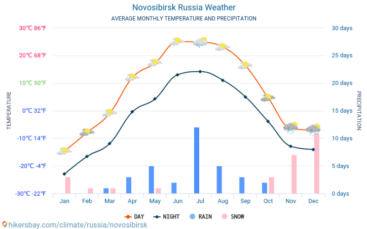 El clima de Novosibirsk es un clima continental extremo, caracterizado por inviernos largos, amargamente fríos y veranos cortos pero cálidos. Al estar en el corazón de Siberia, es una de las grandes ciudades más frías de Rusia.